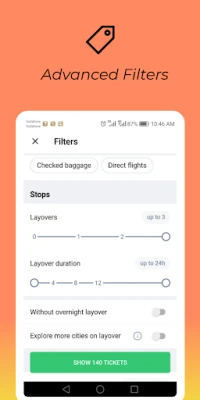 ✓ Use Smart Filters to find the best flight deals, Filter by price, duration, and rating.