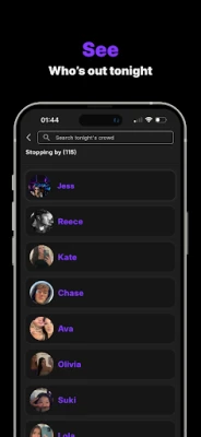 See who’s “stopping by” at every bar or club for that night, live. We show the crowd numbers in real-time with our stopping by feature. You’ll be able to see how many are going and who’s going with profile previews so you can get an idea of the crowd size and who’s there before you even step out.
