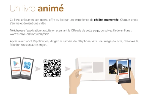 Cette application permet aux détenteurs des ouvrages de "Austral Éditions", de faire l'expérience unique de réalité augmentée. Chaque image des livres de "Austral Éditions" en réalité augmentée, sont animées par une courte vidéo, qui prend la place de l'image imprimée. C'est une application unique pour tous les ouvrages.