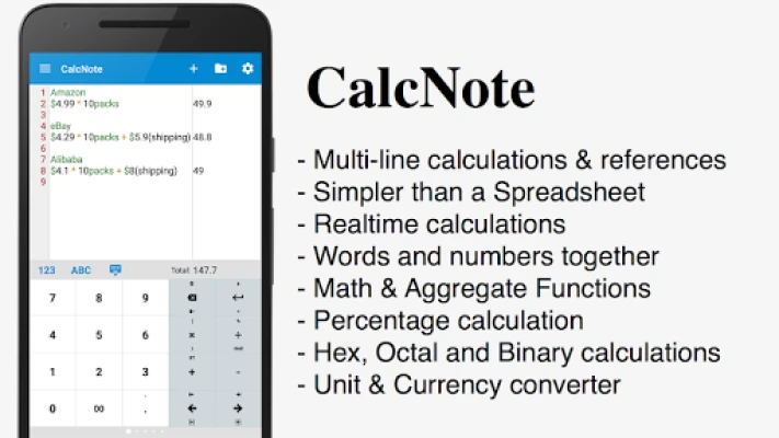 CalcNote will instantly evaluate any mathematical expression and display result in real-time.