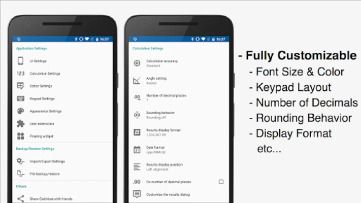 You can customize CalcNote by changing its background/text color, showing/hiding line numbers, fonts, display format, customize the keypad layout and much more.