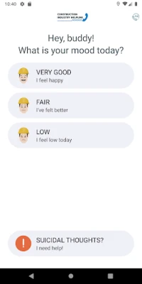 We recognise that not everyone feels comfortable talking about their feelings or personal situation, so the app is aimed at construction workers who would like to find out more information about how they can perhaps help themselves or if necessary, take the next step in seeking professional help. It is a preventative tool and aims to provide support at the initial stages of a situation so that the problem does not reach a life critical stage.