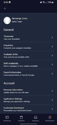 View work schedules from anywhere Easily swap shifts Show your availability Request time off View hours worked See who else is scheduled with you