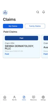 • Claims: Easily view and track all your claims in one simple dashboard.