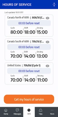 • Get accurate hours-of-service information, know how many hours are left in your shift & cycle