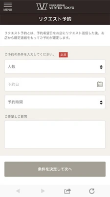 希望の人数・日時を指定して送信するだけで予約を依頼できます。