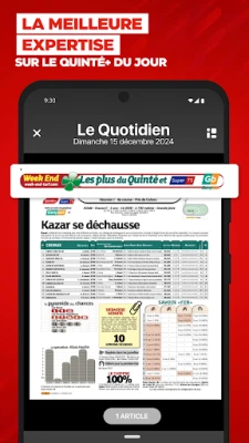 Week End présente 11 pages sur le Quinté dans la plus grande exhaustivité qui soit pour un quotidien hippique. Vous y trouverez également des pronostics, les résultats et rapports des courses et toutes les informations hippiques qui comptent. Les courses PMU sont présentées et analysées.
